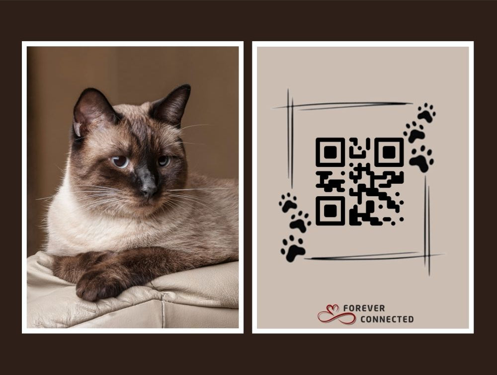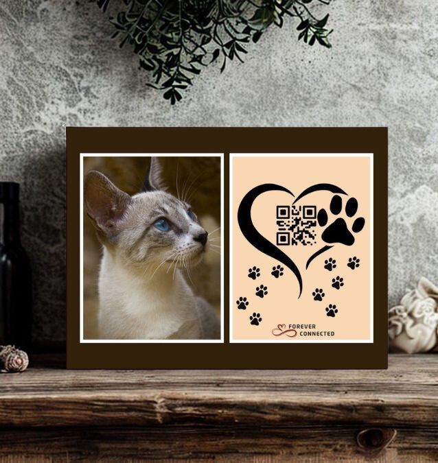 Honor your cherished companion with a custom photo tile that combines a beautiful image of your pet and an artistic QR code that leads to a digital memorial page filled with memories, photos and videos.