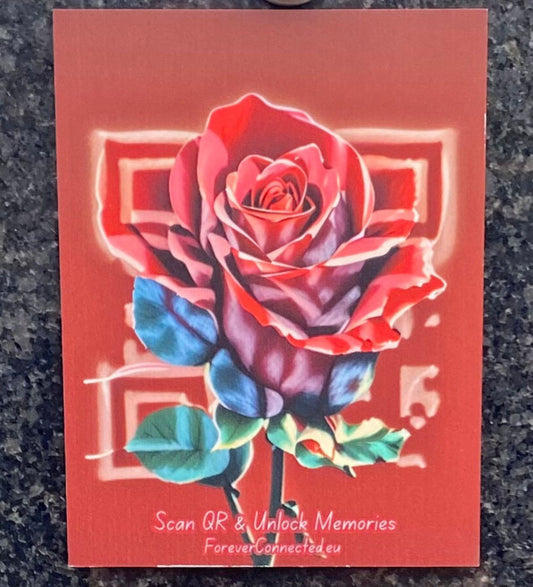 QR Memento featuring a delicate single rose + Digital Memorial Page